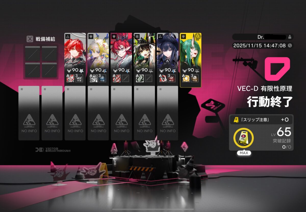 因みにアークナイツはVEC-D支援無しを6人でクリアした