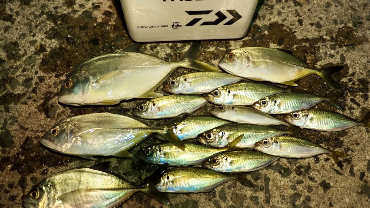 おかげで釣れるアジが夏の豆を卒業したばかりの小アジ