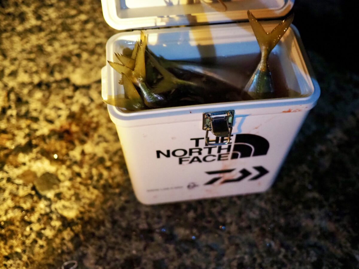 そそくさとアジをバッカンに入れて再度潮の切れ目に遠投