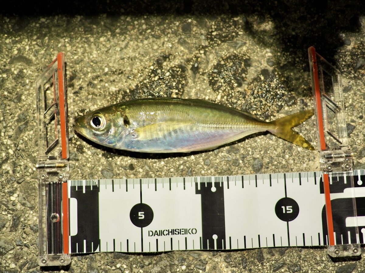 夕暮れ時に回って来た小アジを2.5gで釣るという